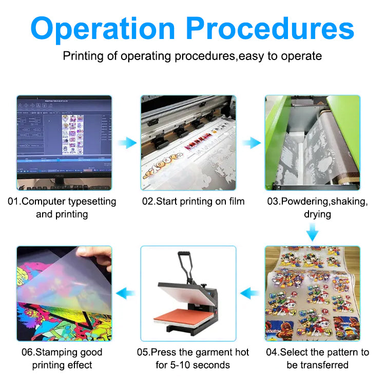Leveraging our expertise in HP, EPSON, Brother, and Ricoh printheads since 2020, we have expanded into the industrial ink field, providing our customers with more scenario-based printing solutions. We offer complete solutions for DTF, UV DTF, and DTG T-shirt printers, Sublimation printer, ECO-solvent printer including ink, transfer film, hot melt adhesive, varnish, printheads, ink cartridges, and other related products.
